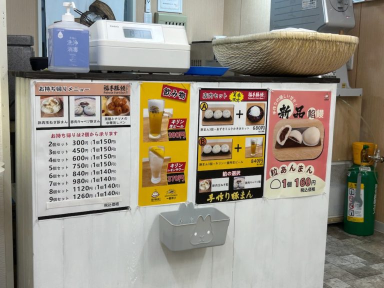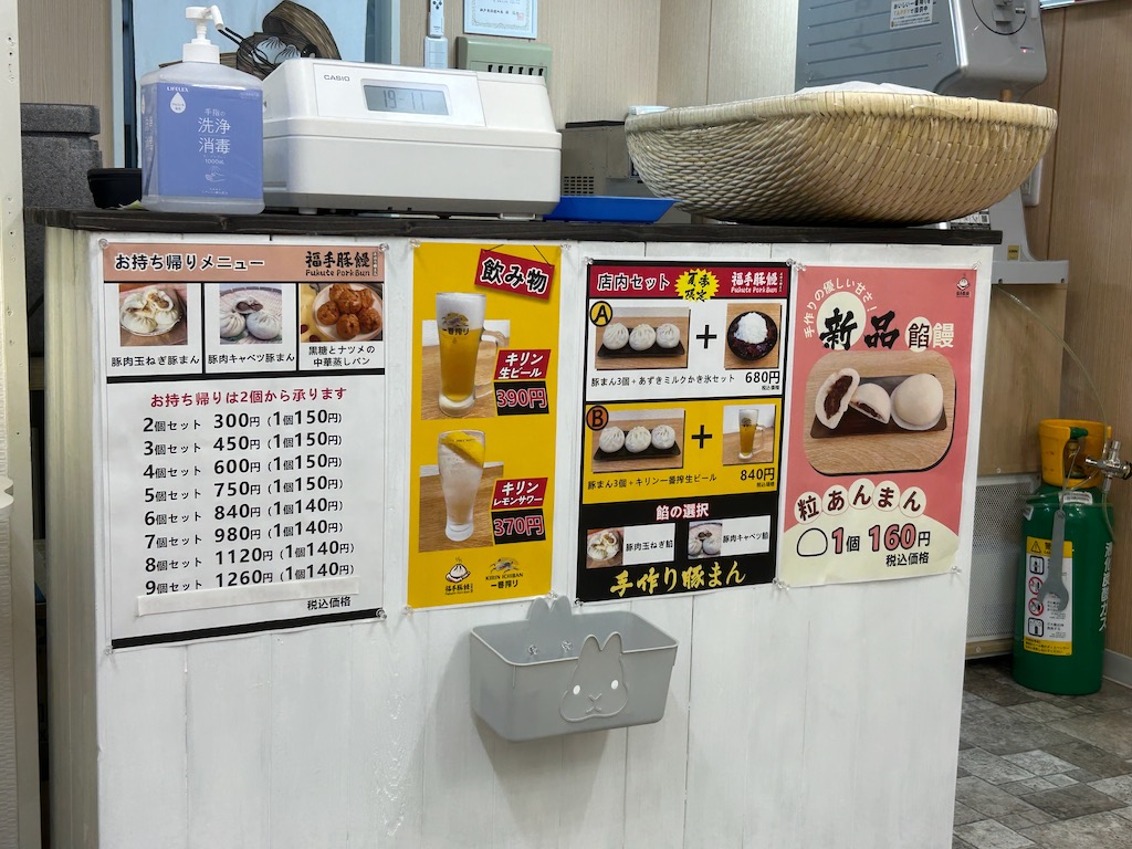 メニューは豚まん(具材により二種類)以外にあんまんや中華風蒸しパンも。