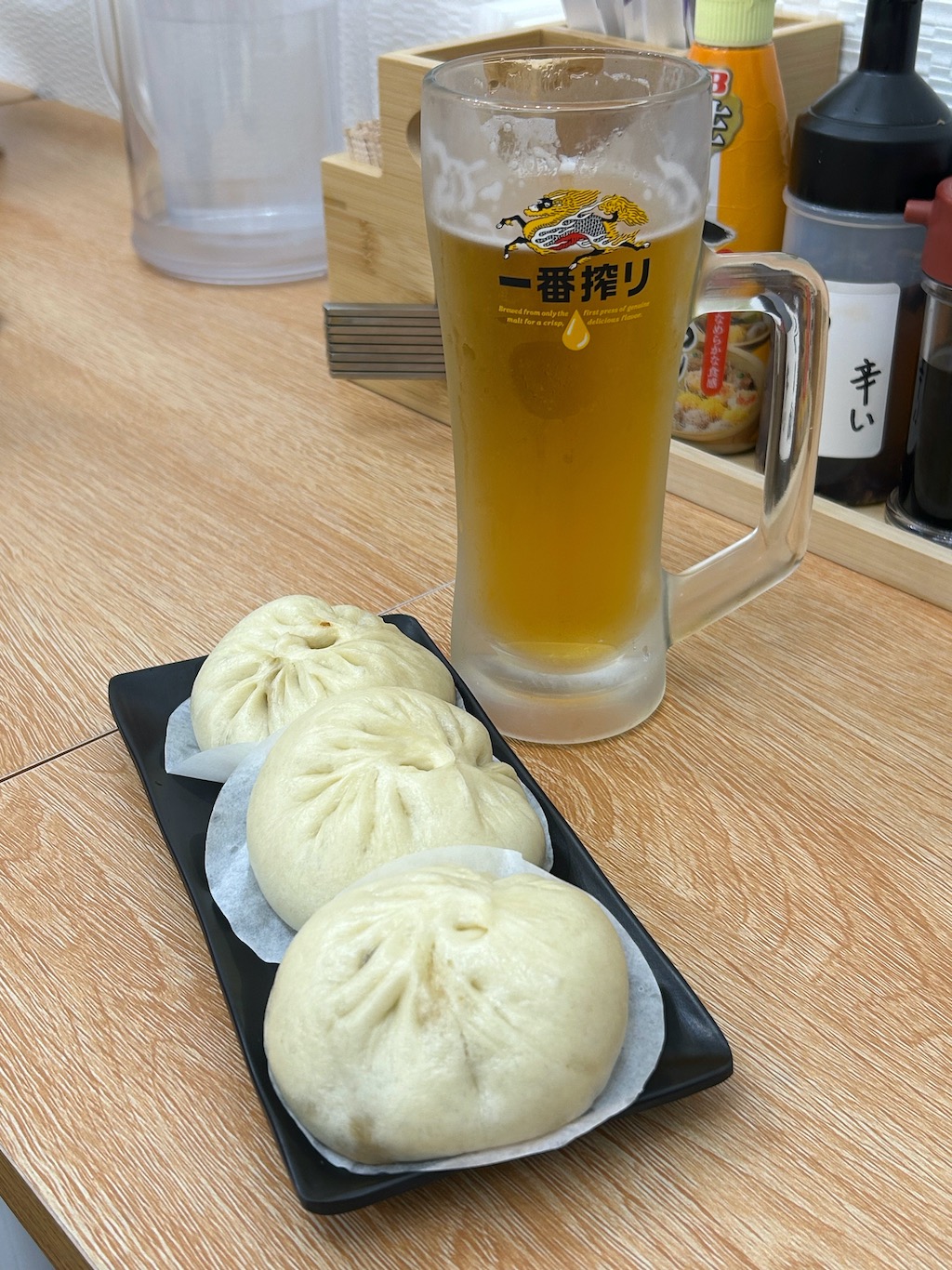 食べられるならビール単品にせずに豚肉キャベツ豚まんとのセットにしたのですが (^^;